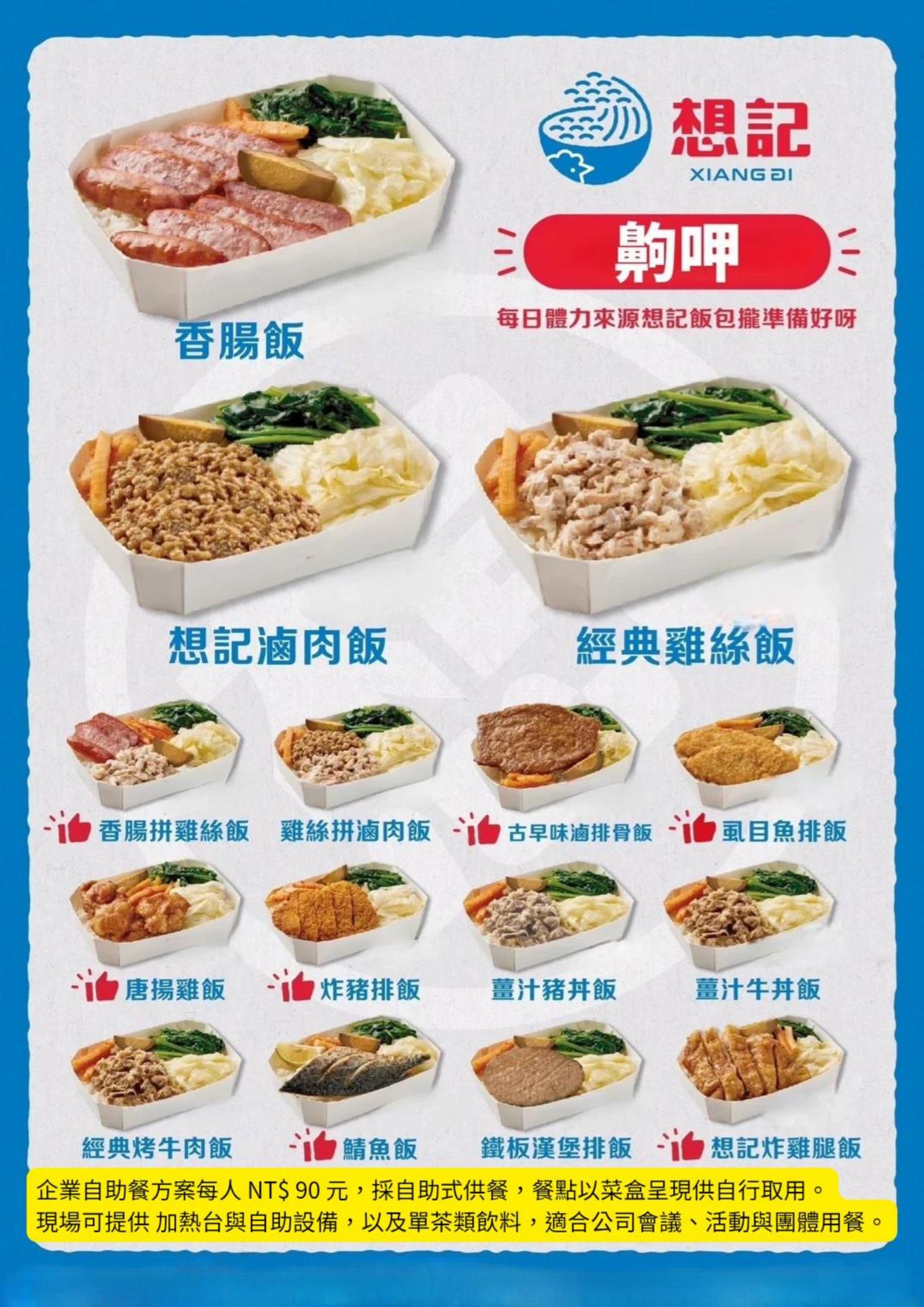 會員廠商:想想國際(股)公司 為就近服務區內廠商,旗下品牌「想記飯包」提供便當優惠方案,詳情如下,請參閱,歡迎有需求者洽詢運用。