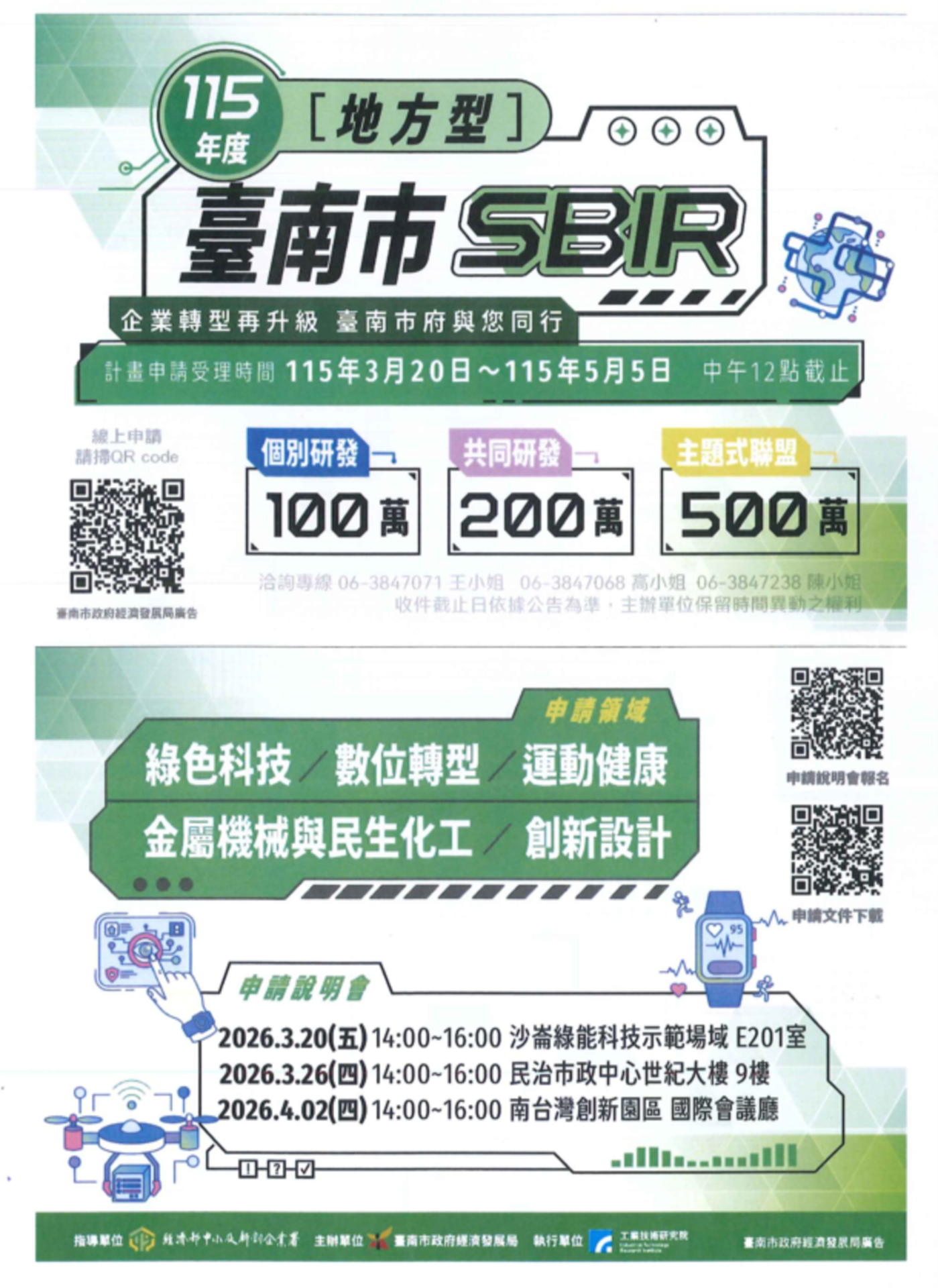 115.03.24 臺南市政府辦理115年度「臺南市地方產業創新研發推動計畫(地方型SBIR)」,計畫採線上申請,詳如附件,請參閱,感謝您。