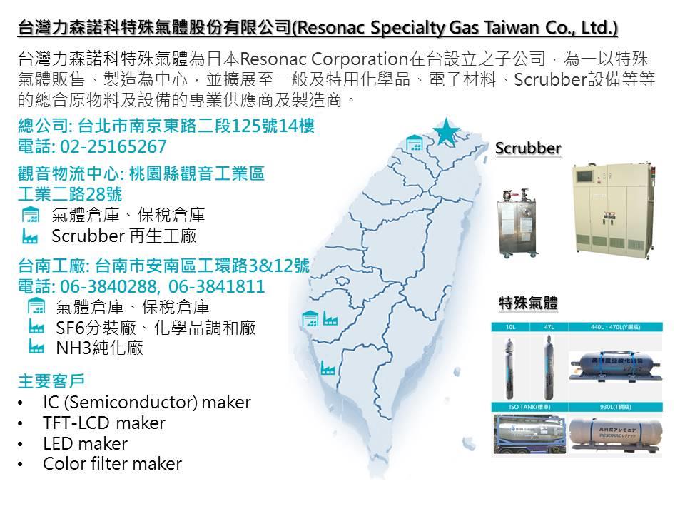 昭和特殊氣體為日本昭和電工在台設立之子公司,為一以特殊氣體販售、製造為中心,並擴展至一般及特用化學品、電子材料、Scrubber設備等等的總合原物料及設備的專業供應商及製造商。