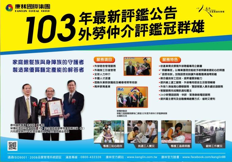 康林國際集團以服務社會,提昇國民生活品質為胸懷壯志,為減緩各業界勞力不足之困擾及擴大服務層面,特別成立康林國際集團,秉持著「專業服務、品質保證」的信念,以及「以人為本‧永遠真誠的關懷」的理念,與勞委會指定之國外優良仲介合作,代為引進泰國、印尼、菲律賓、越南等國家,嚴格甄選與縝密身家調查之外籍勞工,期藉由完善的管理與輔導,使各雇主能有效掌握人力,勞工們也能發揮所長加強產業投資意願,協助國內企業解決缺工問題,以及提供家庭幫傭和家庭看護需求的選擇,促使國內業在經濟轉型期間,能順利提昇競爭力,邁入另一高峰。