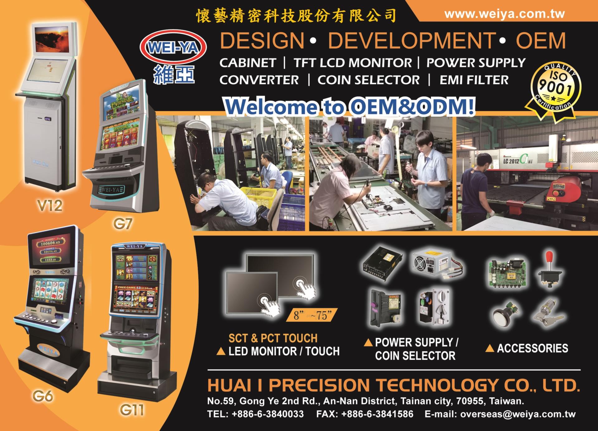 懷藝精密科技股份有限公司成立於1980年,為一專業生產博奕型電玩機台、電腦、多媒體、電子遊戲機用的螢幕(10”~38”)、液晶螢幕(10"~55") 、轉換式電源供應器及附屬零件等的公司。 在2002年5月懷藝公司經由UL取得ISO 9001國際品質認證。為了符合客戶及市場之需求,我們己經有多項產品通過CE/UL/FCC之認證。在業界,懷藝是全台灣第一家榮獲ISO9001認證產品行銷全世界一百多個國家,也是第一家接受輔導,將要上櫃的公司。