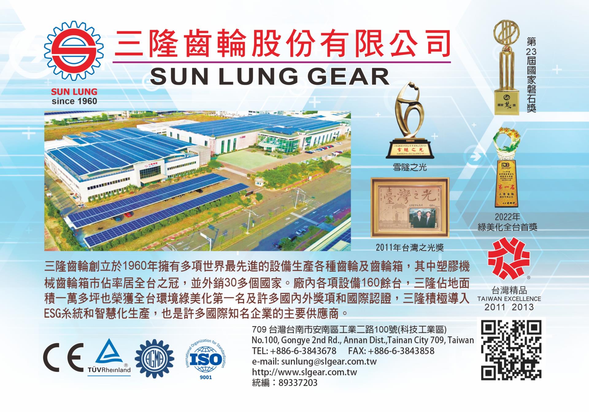 三隆齒輪股份有限公司,創立於1960年,專業製造各種產業機械之精密齒輪及塑膠機械專用之齒輪箱,如押出成型機、全電式射出成型機、中空成型機、吹袋/片材/板材/管材/異型材押出設備及回收設備等。