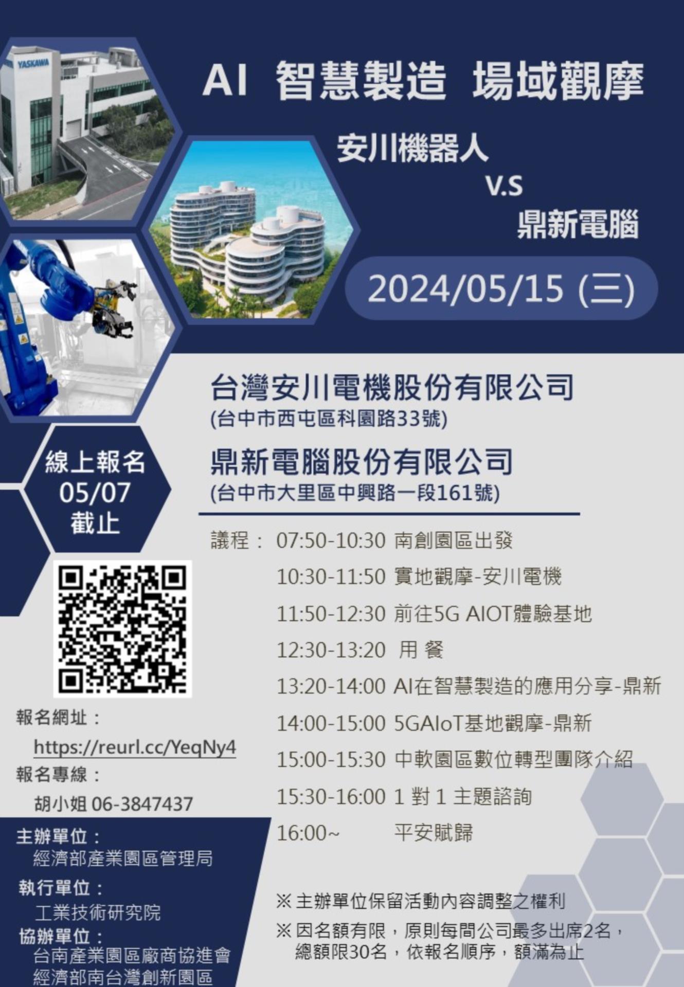 敬邀參加由工研院與廠協會合辦的『AI綠色智慧 場域觀摩』活動,本次辦理日期:5/15(三),台灣已有76%企業面臨轉型挑戰,以實際體驗找到實踐數位化轉型的最佳方案。