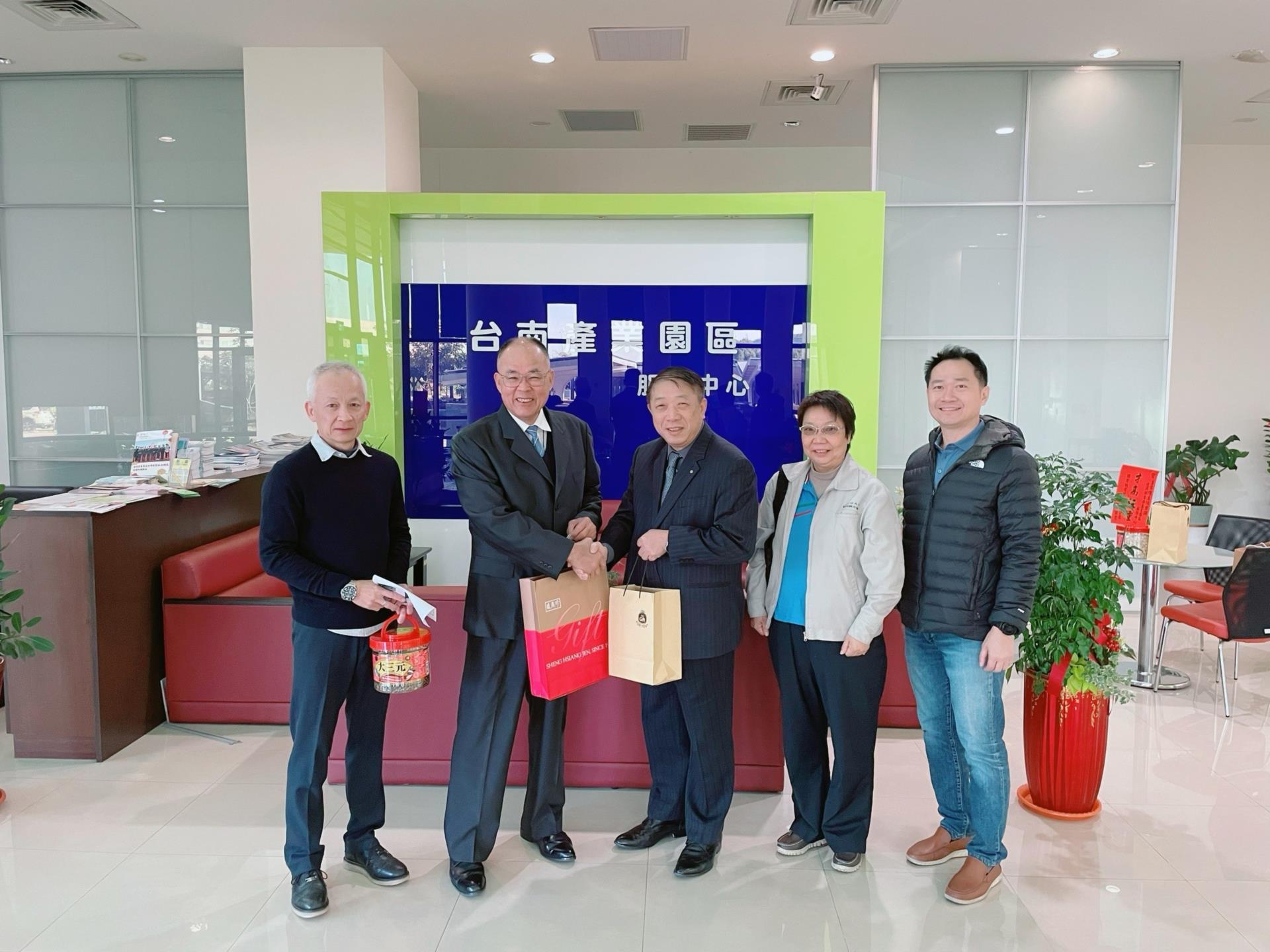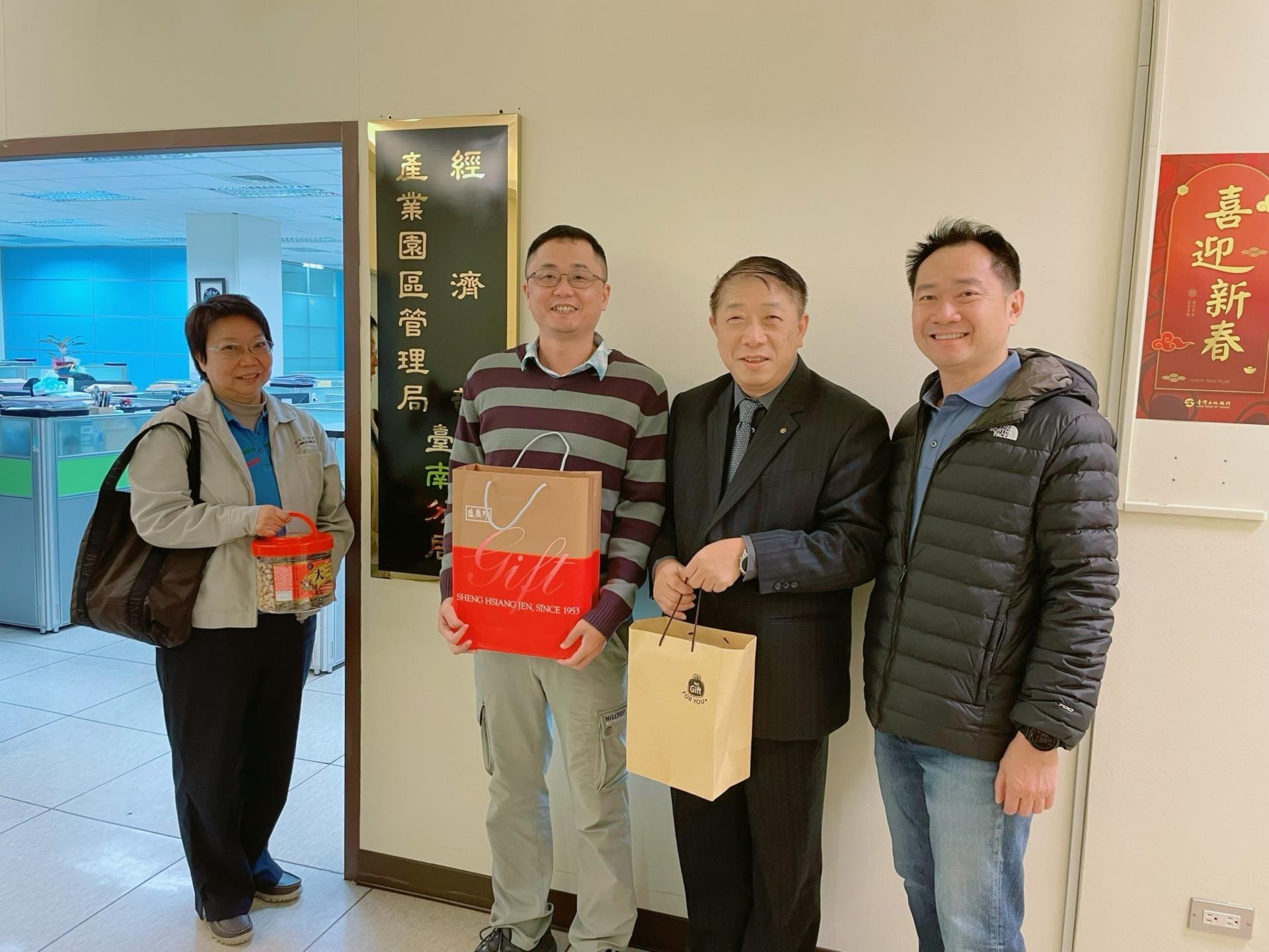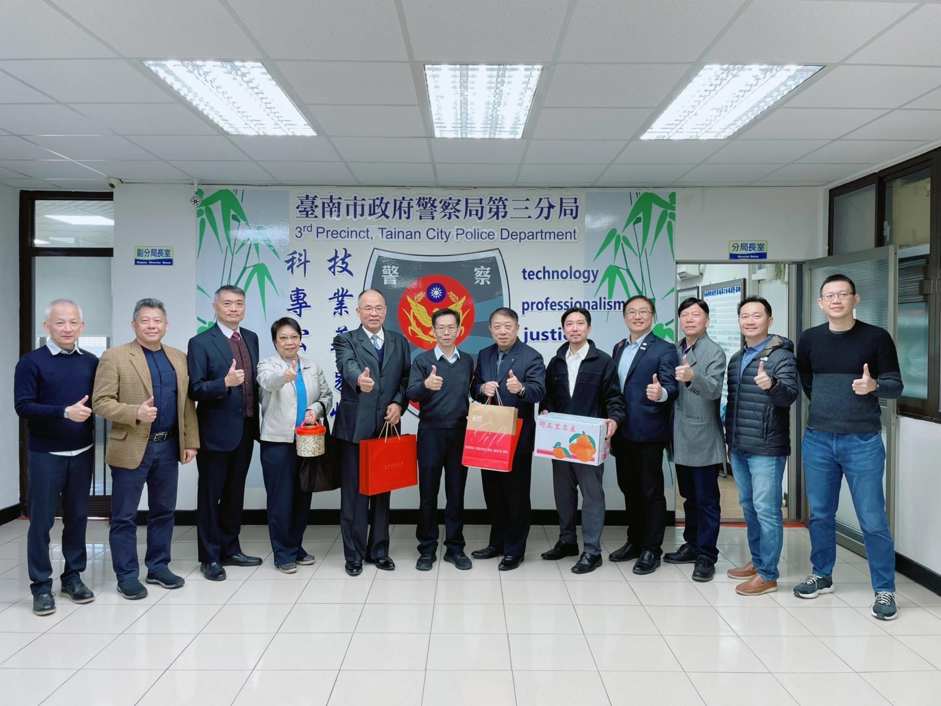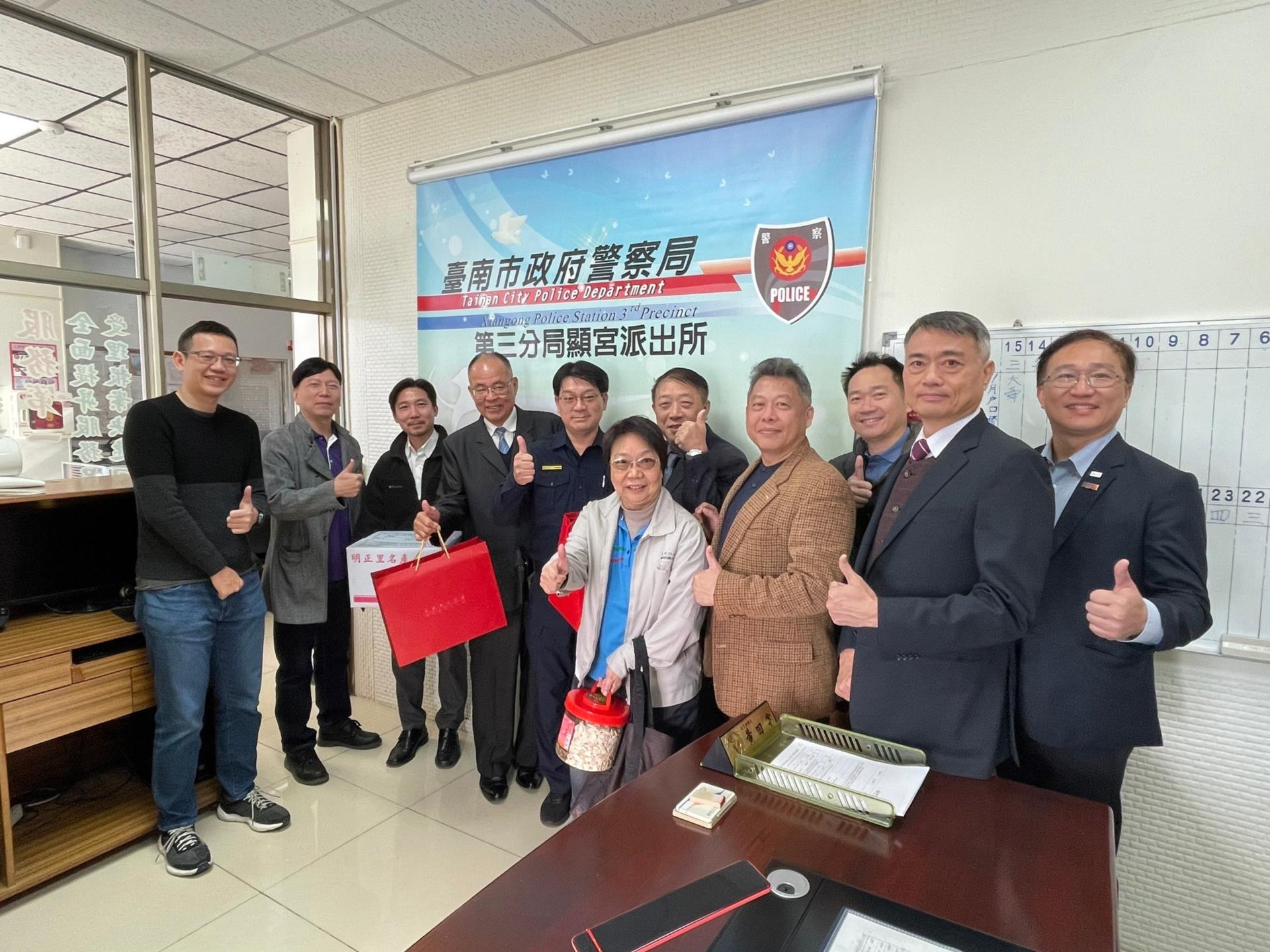 人聯袂前往「產業園區管理局台南分局、服務中心、警察局第三分局、顯宮派出所、土城消防隊、消防局第六大隊」贈送水果、餅乾等慰勞品,感謝春安工作執勤人員辛勞。