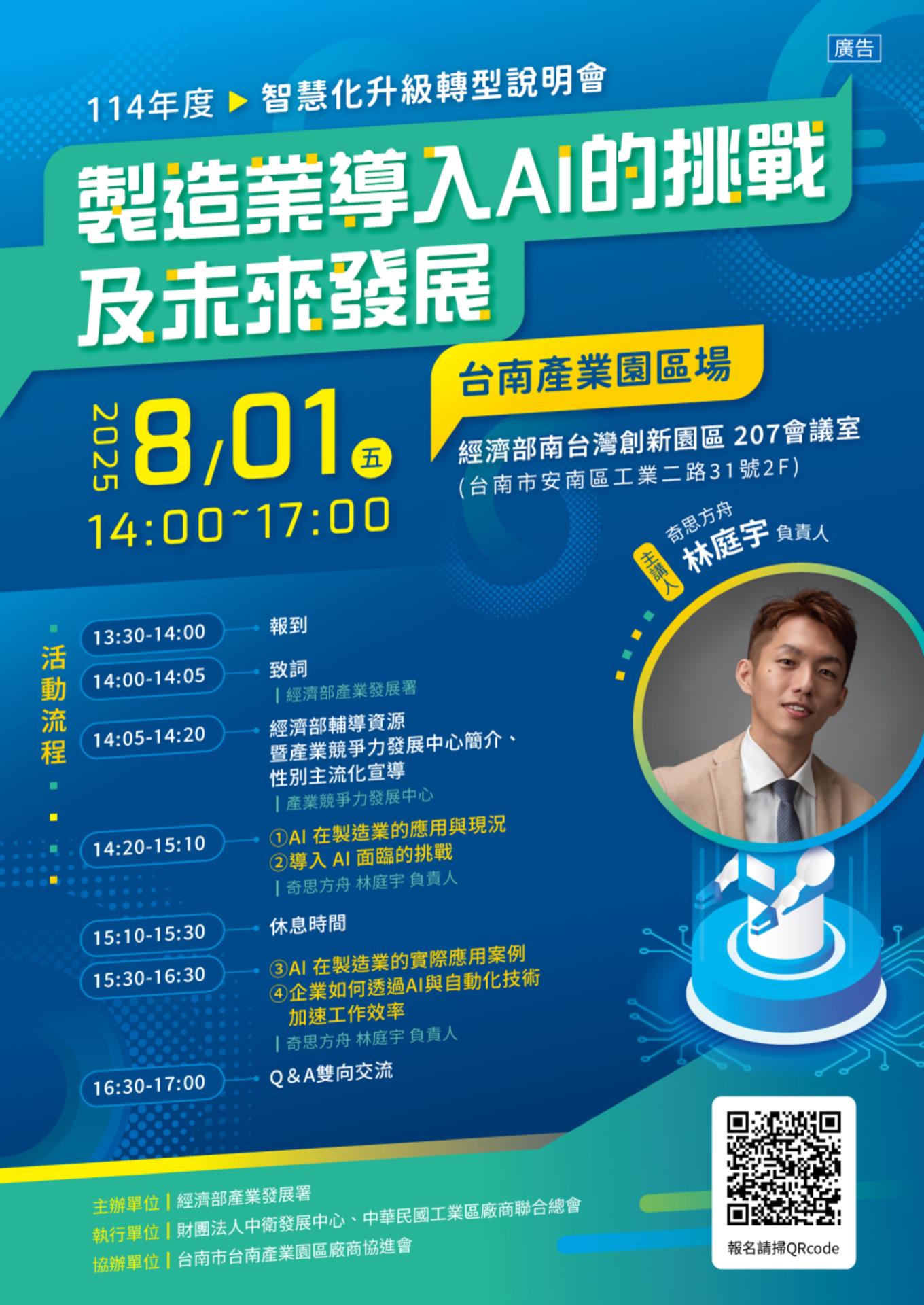 「AI智慧化升級轉型說明會」 限額報名中!(114年度產業升級轉型專題講座)