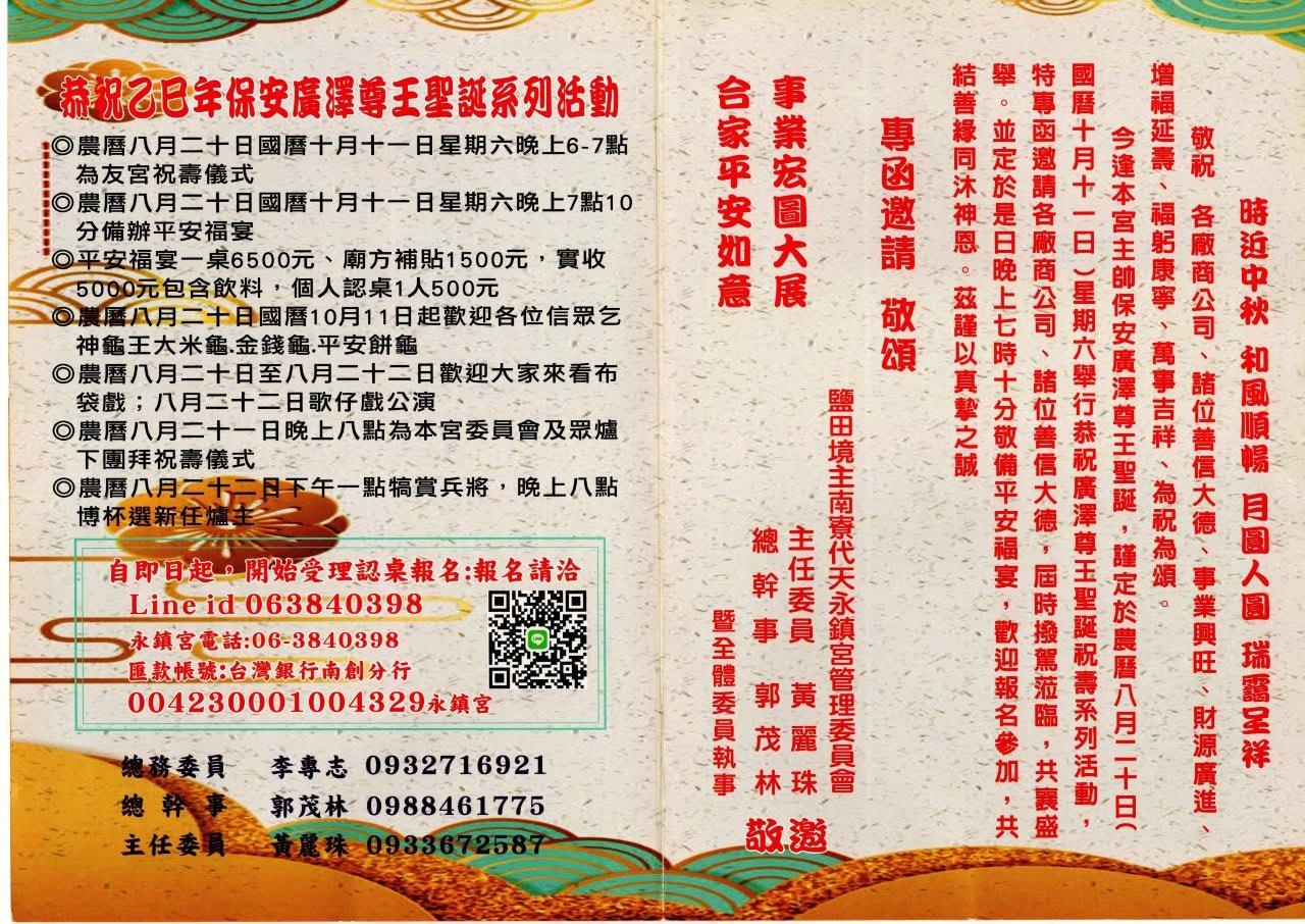 【廠協會敦親睦鄰通知】:114.10.11 永鎮宮廣澤尊王壽誕