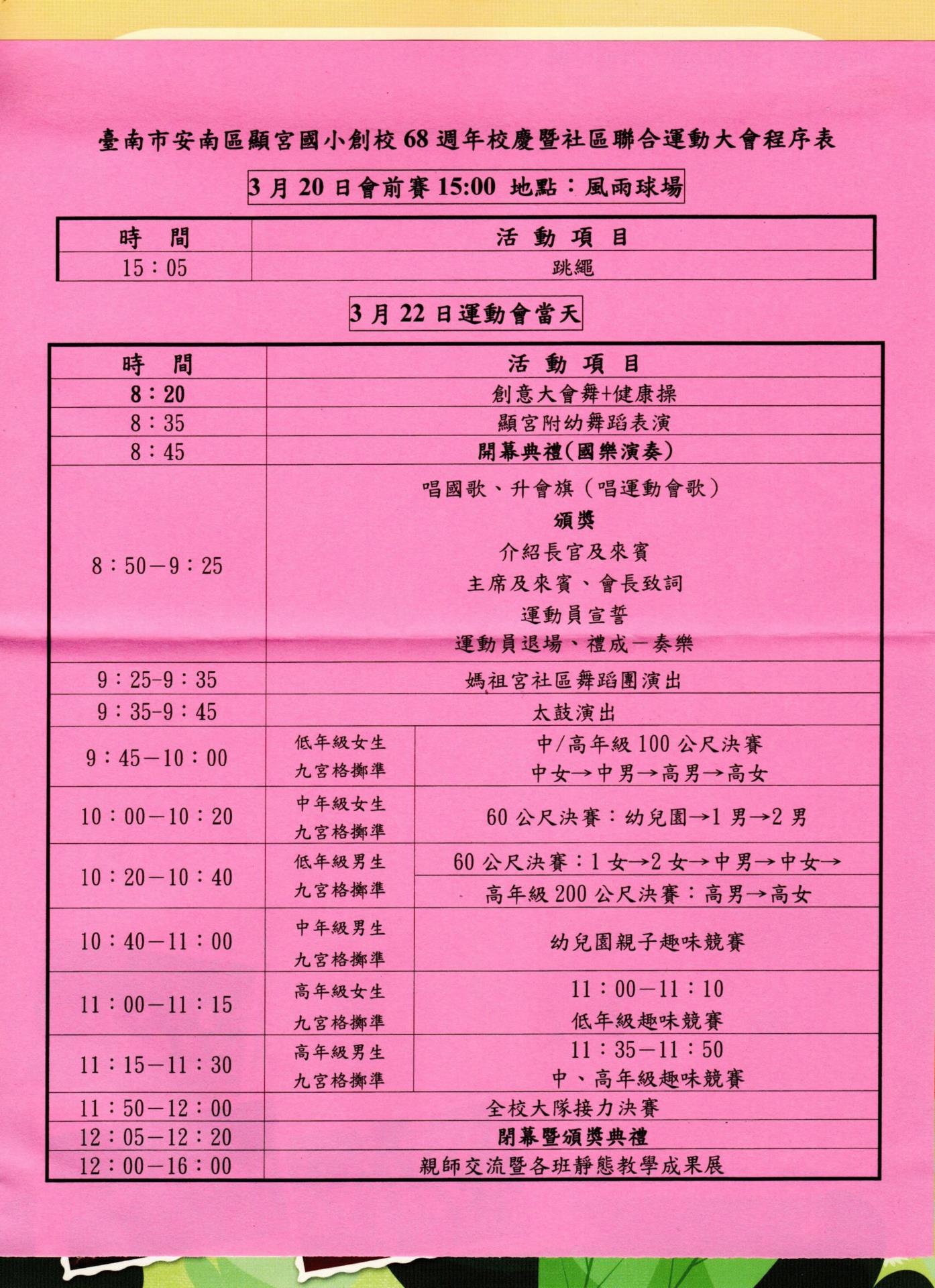 【廠協會社會公益通知】:114.03.22(六)顯宮國小舉行68週年校慶暨運動大會