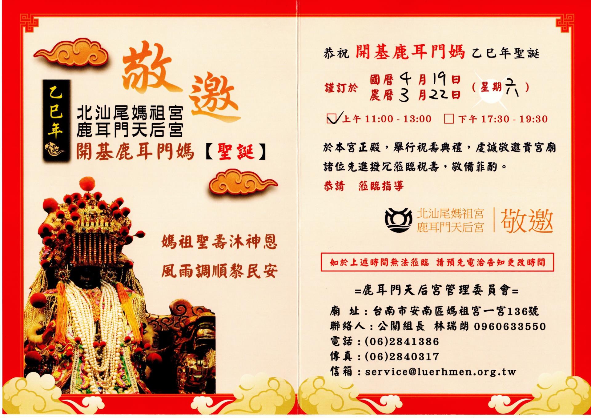 【廠協會敦親睦鄰通知】:114.04.19 北汕尾鹿耳門天后宮[開基鹿耳門媽]乙巳年聖誕